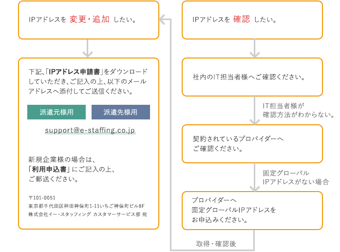 - ※ e-staffing利用申込時に、 固定グローバルIPアドレスが必要になります